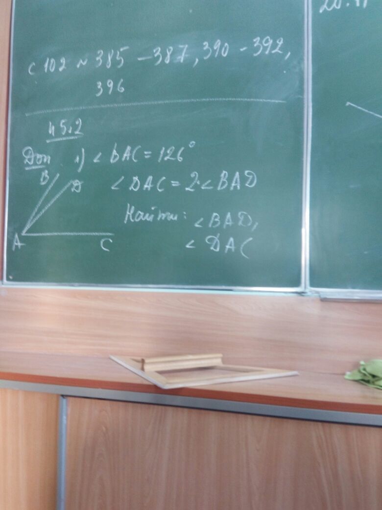 так как bac 126 bad равен bac делить на 2 то 63 dac равен bac -bad=dac то 126-63=63