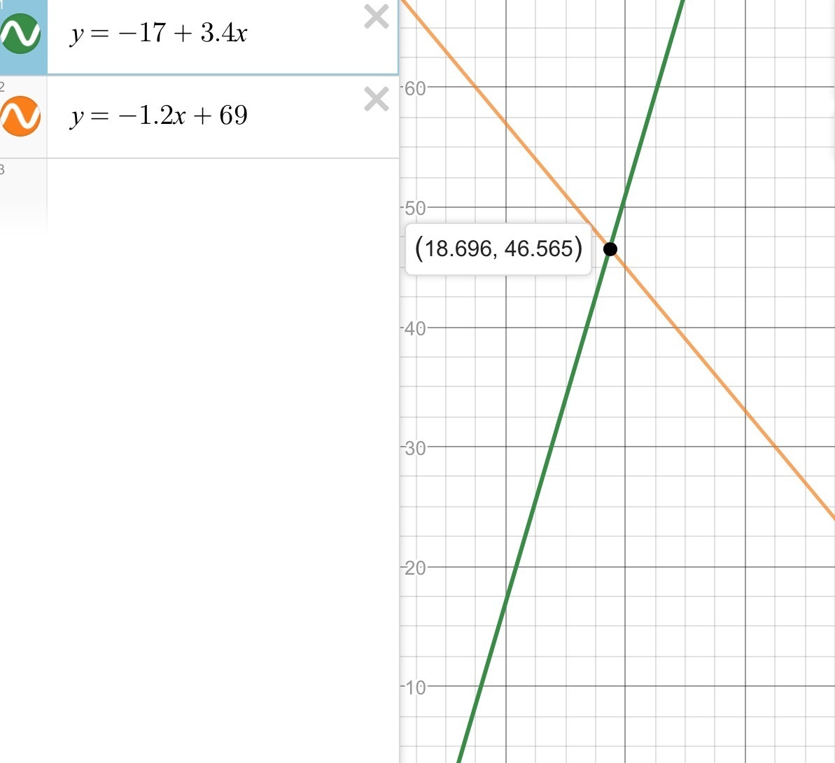 найдите координаты точек пересечения графиков функций:1)у=-6х+1 и у=5х+9; 2)у=-17+3,4х и у=-1,2х+69; 3)у=21-9х и у=-2,5х+8; 4)у=16,2+8х и у=-0,8х+7,4