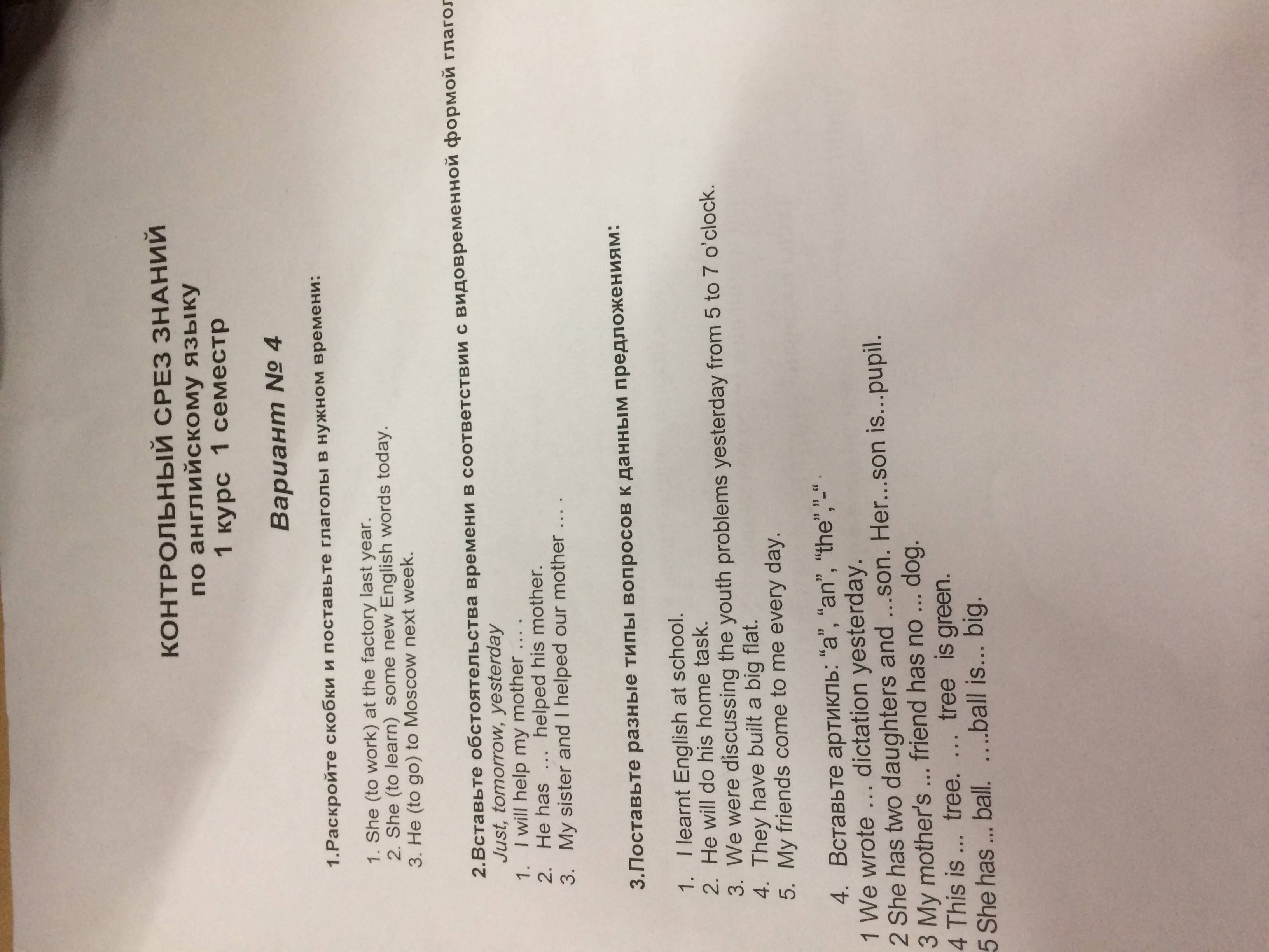 3 My sister and I helped our mother yesterday.