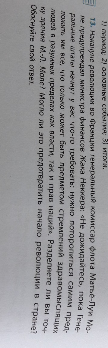 Накануне Революции во Франции генеральный Комиссар флота флота Матье Луи Молле предупреждал министр финансов Жака нехера не дожидаясь пока Генеральные штаты начнут у вас что-то требовать нужно поторопиться самим переложить им всё что только может быть предметом рифленым здравомыслящих людей и разумных пределах как стали так и прав Наций разделяете ли вы точку зрения Молли много ли это претворить начало революции в стране Обоснуйте этот ответ задание во-первых непонятные что тебе надо просто здесь много вопросов и поэтому я не могу понять какой именно вопрос тебе надо так что как бы назначил потом карандашиком или ещё что-то потому что Ничего непонятно но за фотку фотку четкой
