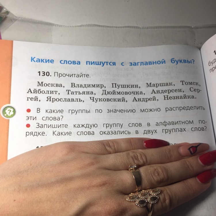 города: Москва, Владимир, Пушкин, Томск, Ярославль.имена: Владимир, Пушкин, Маршак, Айболит, Татьяна, Дюймовочка, Андерсен, Сергей, Чуковский, Андрей, Незнайка.