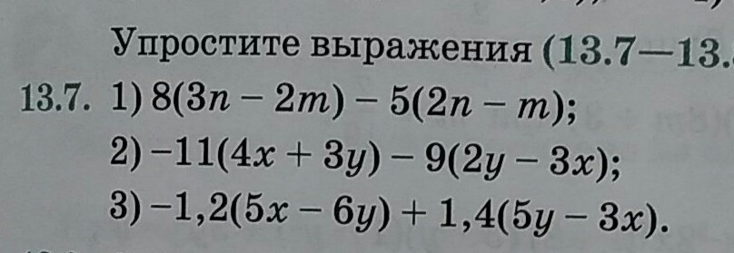 1) 8(3n-2m)-5(2n-m)= 24n-16m-10n+5m= 14n-9m