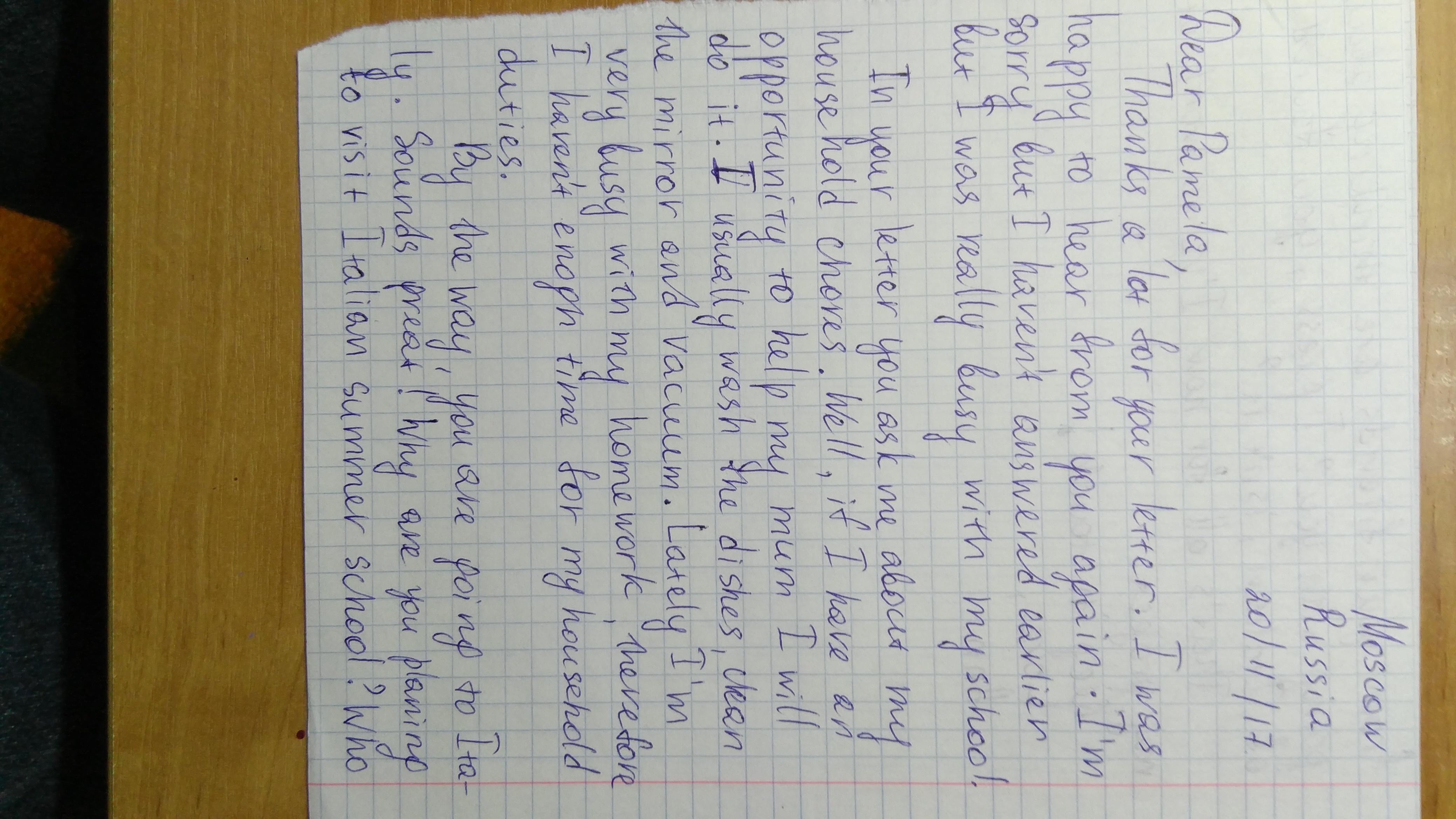 You have received a letter from your English-speaking pen friend Pamela who writes