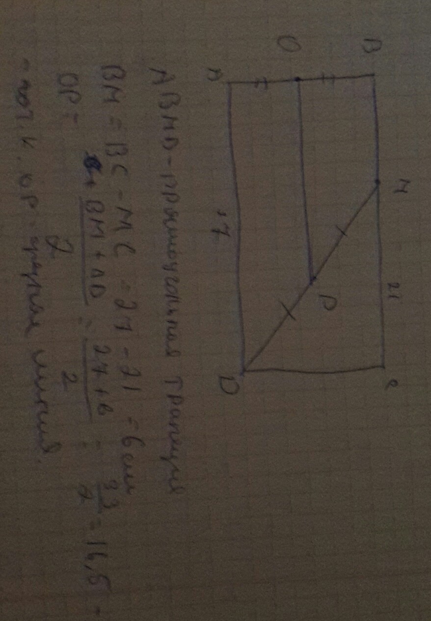 ОP=16.5 т.к. это средняя линия трапеции