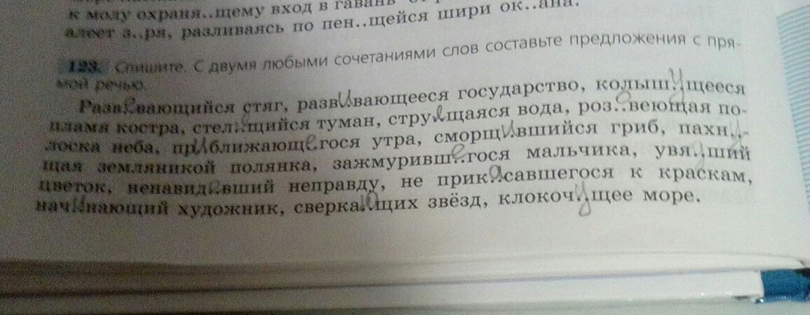 Упражнение 123,С двумя любыми сочетаниями слов составьте предложения с прямой речью!!
