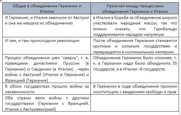 Сравнительная таблица по объединению Германии и Италии ниже