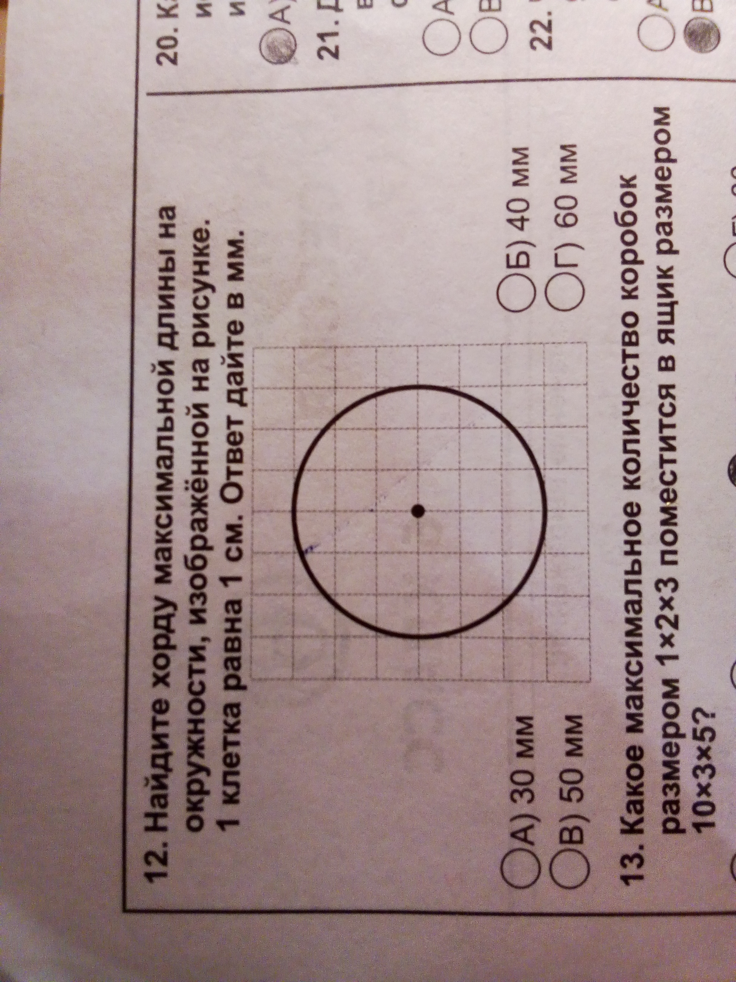 максимальна хорда кола це 50мм томущо хорда це выдрызок що зэднуэ двы точки кола.