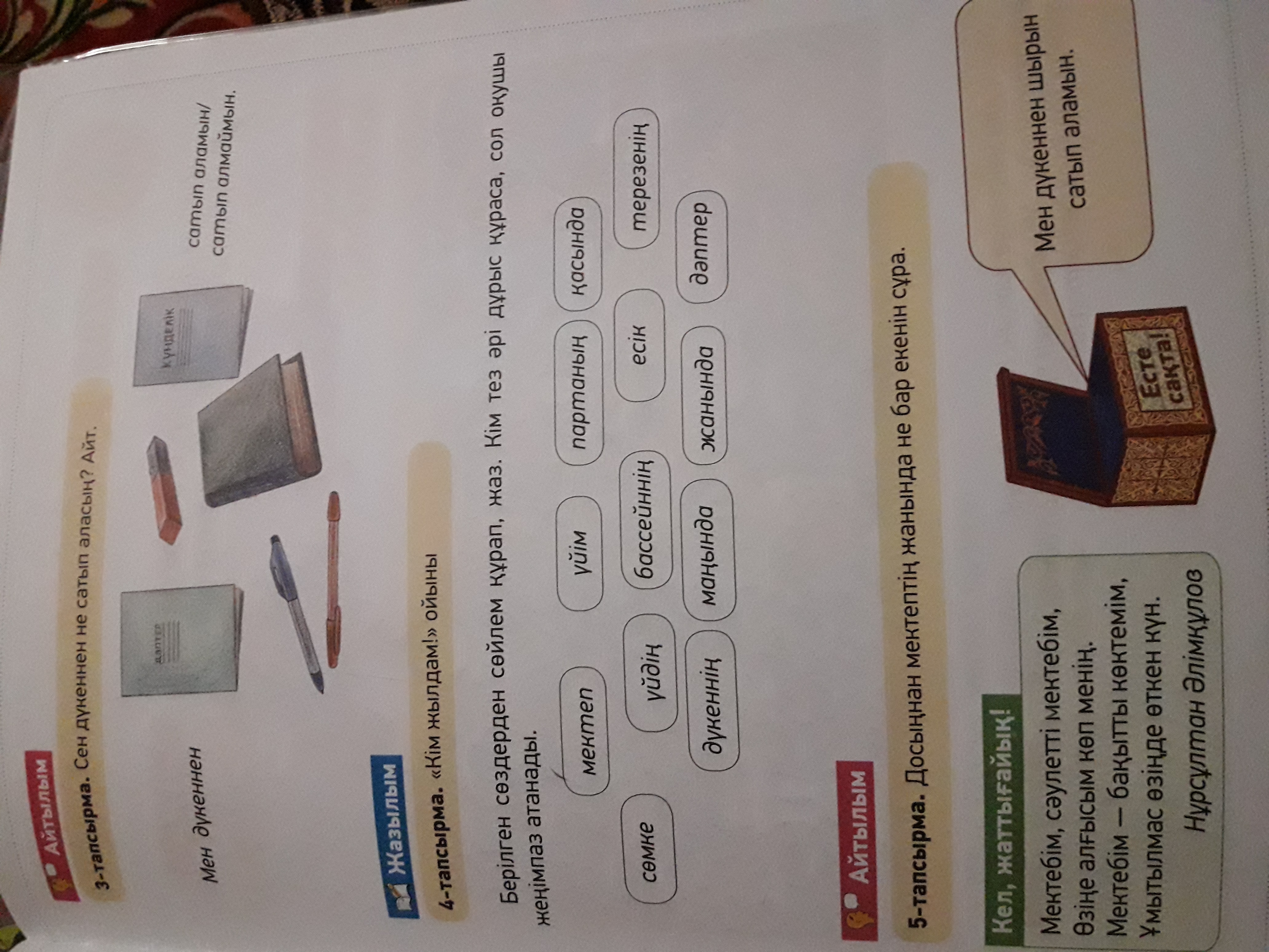 Партаның астында жатқан сенің ұштағышың ба?