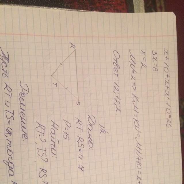 Пусть RT= 4х, RS= 7х, ST=RT= 4х