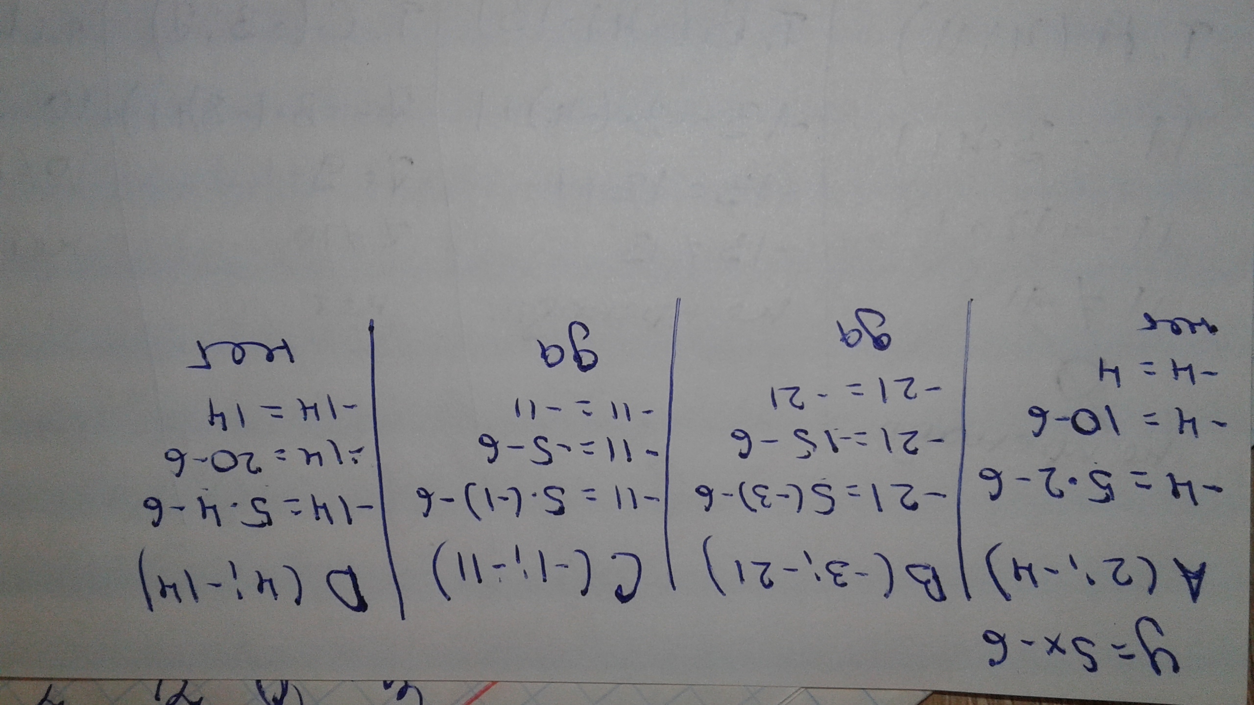 Какие из четырех точек принадлежат графику функции y=5x-6