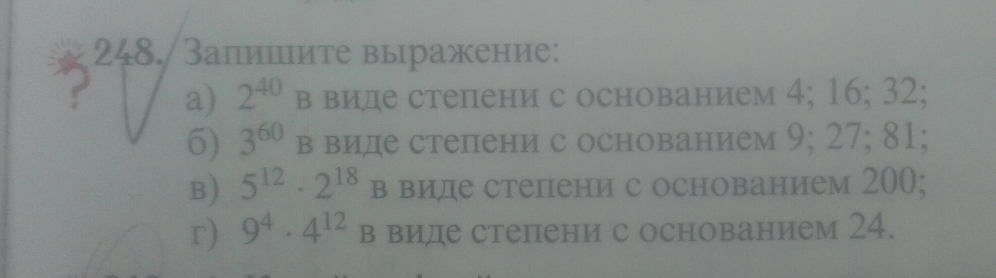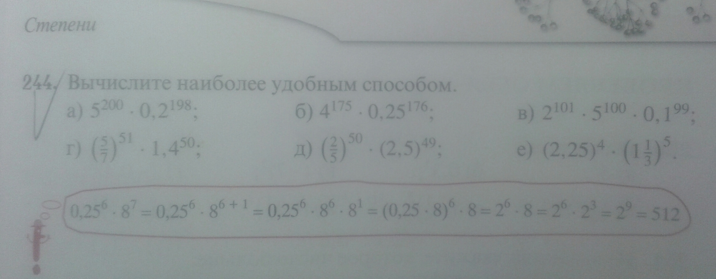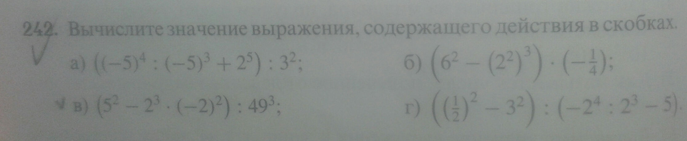 б) (6^2-(2^2)^3)*(-1/4)=(36-2^6)*(-1/4)=(36-64)*(-1/4)= -28*(-1/4)=7