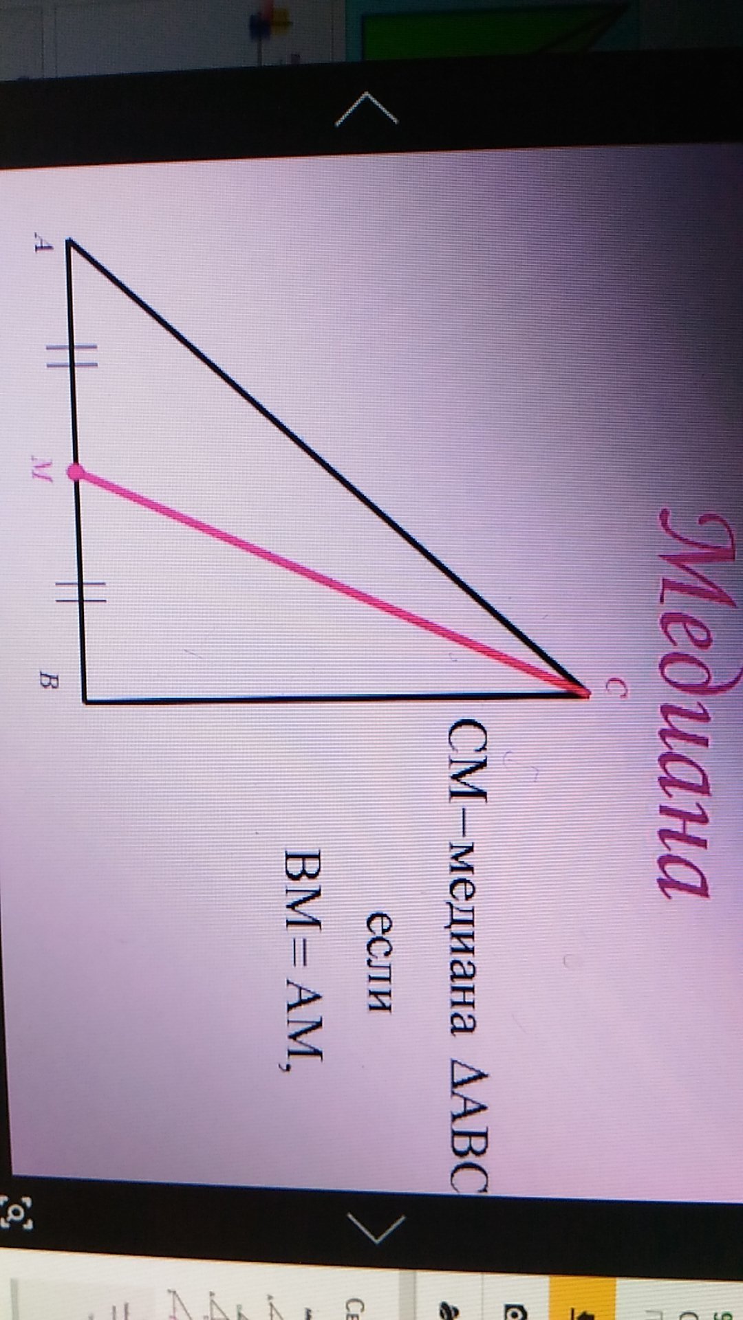 Медиана - это линия проведенная от угла, к середине противоположной стороны.