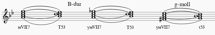 Построить Vll 7 и умVll 7 в В-dur g-moll (в си бемоль мажоре и соль миноре) ПОЖАЛУЙСТА, ПОМОГИТЕ!!!!!! Напишите вводные септаккорды!!!!! С разрешениями!