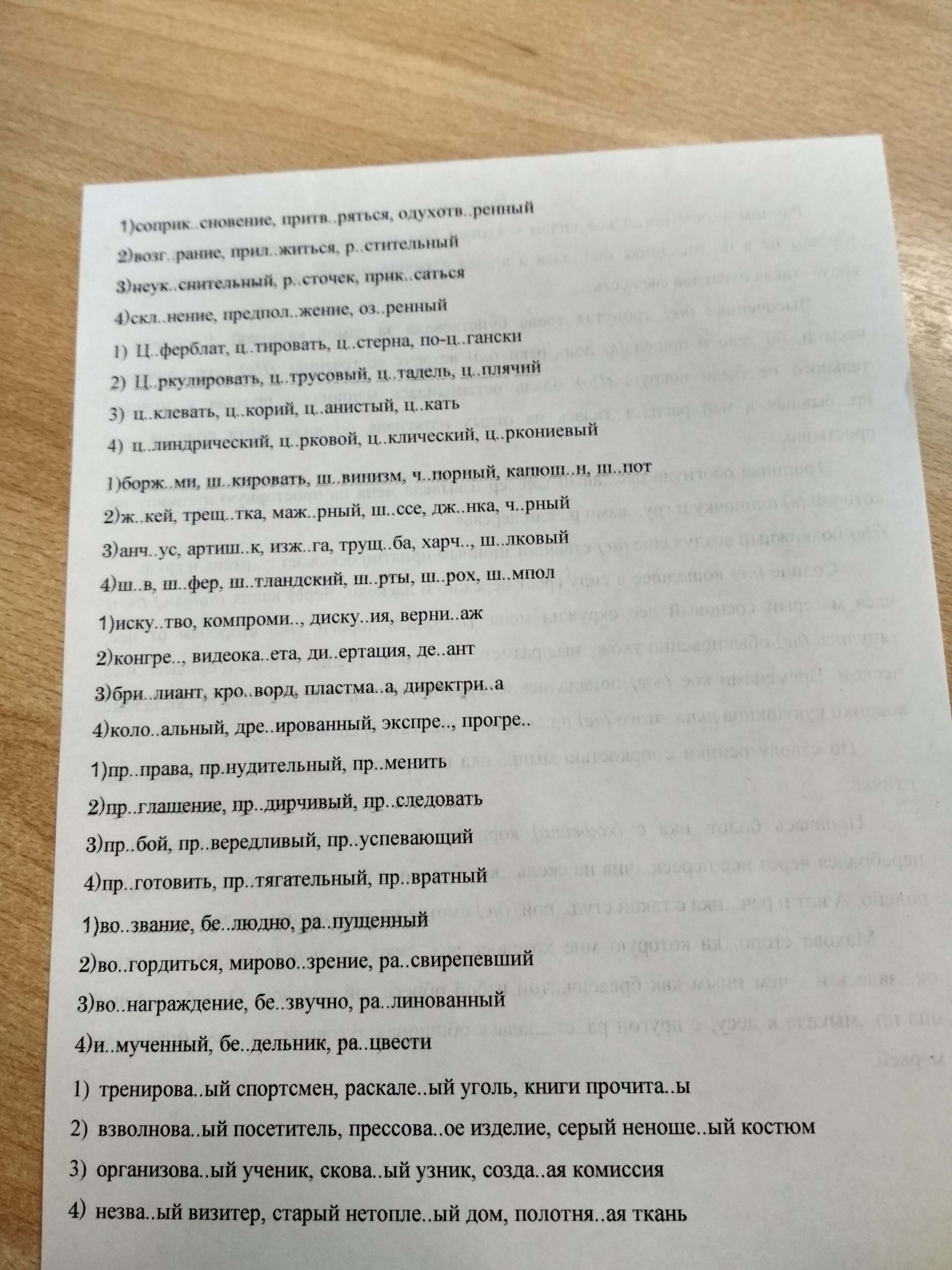 3) циклевать, цикорий, цианистый, цыкать