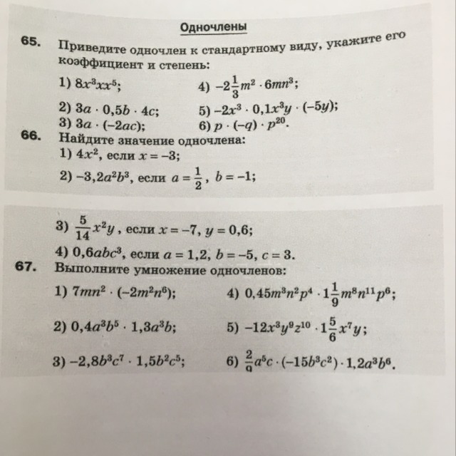 65. Надо вспомнить свойства степеней. В первом подномере, например, что степени иксов складываются, будет 8*x^{3+1+5} = 8*x^{9}.
