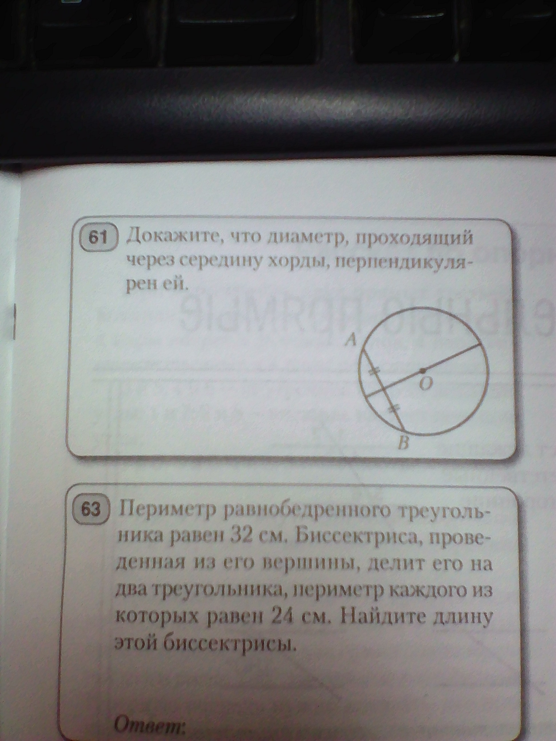 проводим радиусы оа и ов, по трём сторонам доказываем равенство малых треугольников