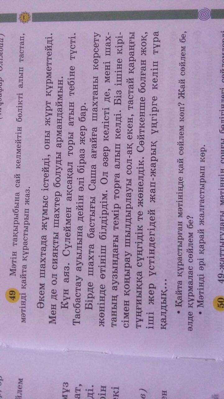 Әкем шахтада жұмыс істейді, оны жұрт құрметтейді. Мен де ол сияқты шахтер болуды армандаймын.