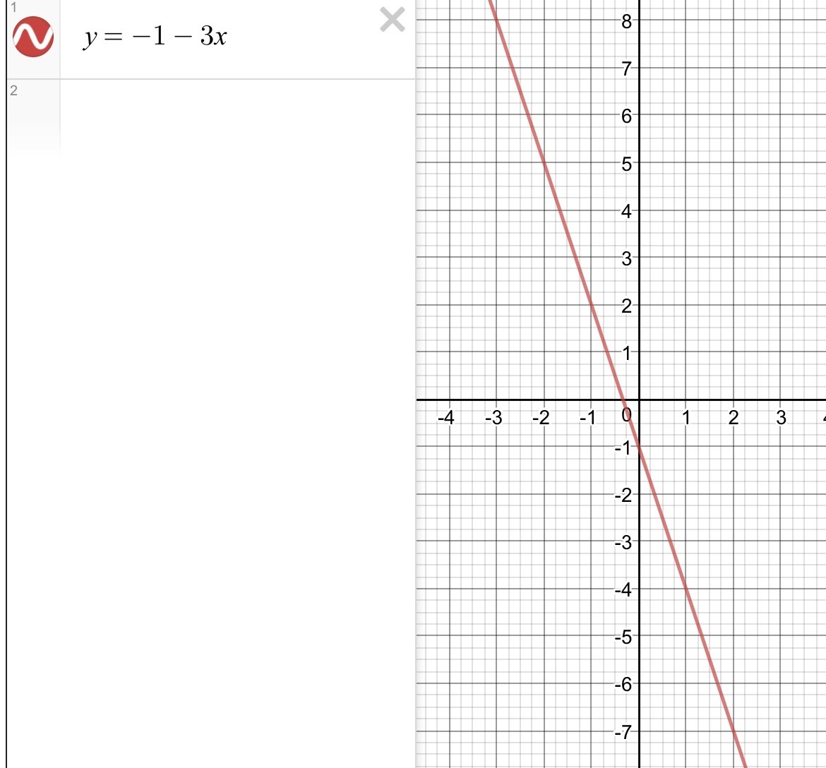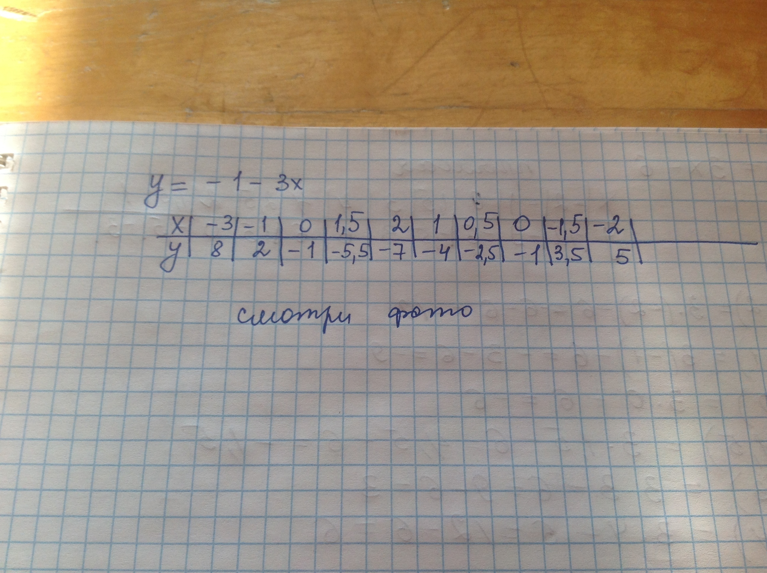 Постройте график функции заданной формулой y= - 1 - 3 x найдите по графику 1 значение y соответствующее значению x равному - 3. - 1. 0. 1,5. 2 2 значение икс при котором значение y равно - 4 .- 2,5 .- 1 .3, 5. 5
