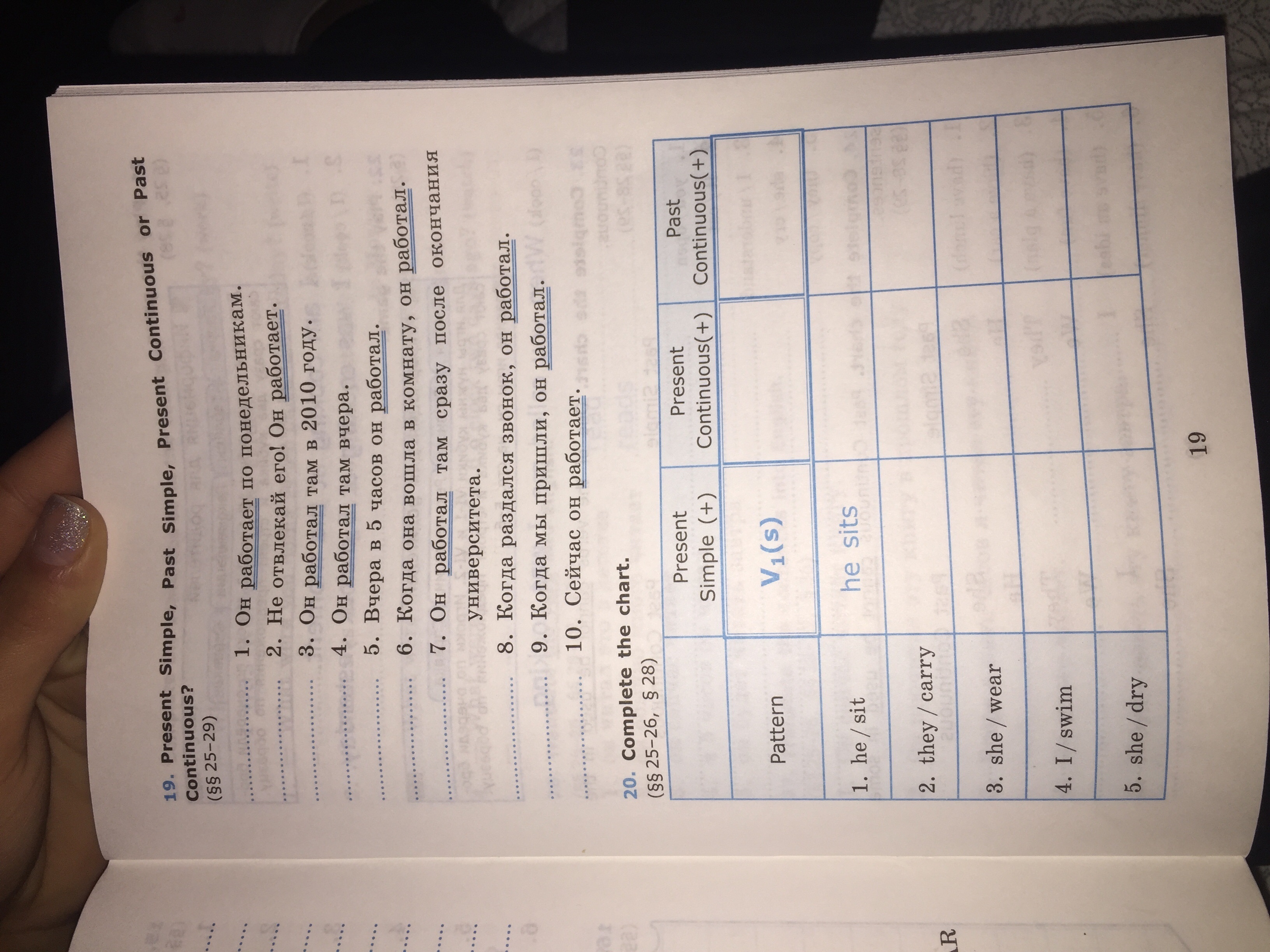 Present Simple глагол в 1 форме, а если он/она,то окончание s, как в примере