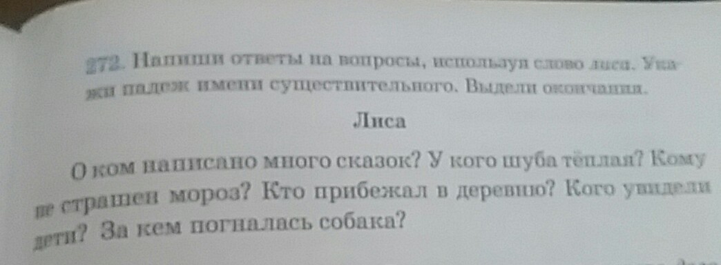 О лисе(написано много сказок). У лисы(шуба теплая). Лисе(не страшен мороз). Лиса(прибежала в деревню). Лису(увидели дети). За лисой(гналась собака).