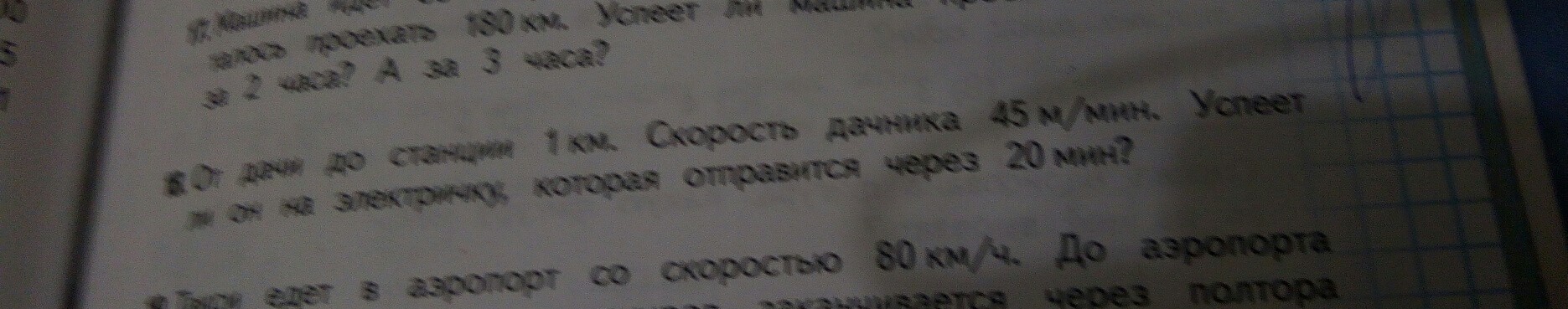 Дачник проходит 45 метров за минуту, надо успеть за 20 минут, за 20 минут пройдет 20×45=900 метров. А до станции 1000 метров. Не успеет, надо бегом)