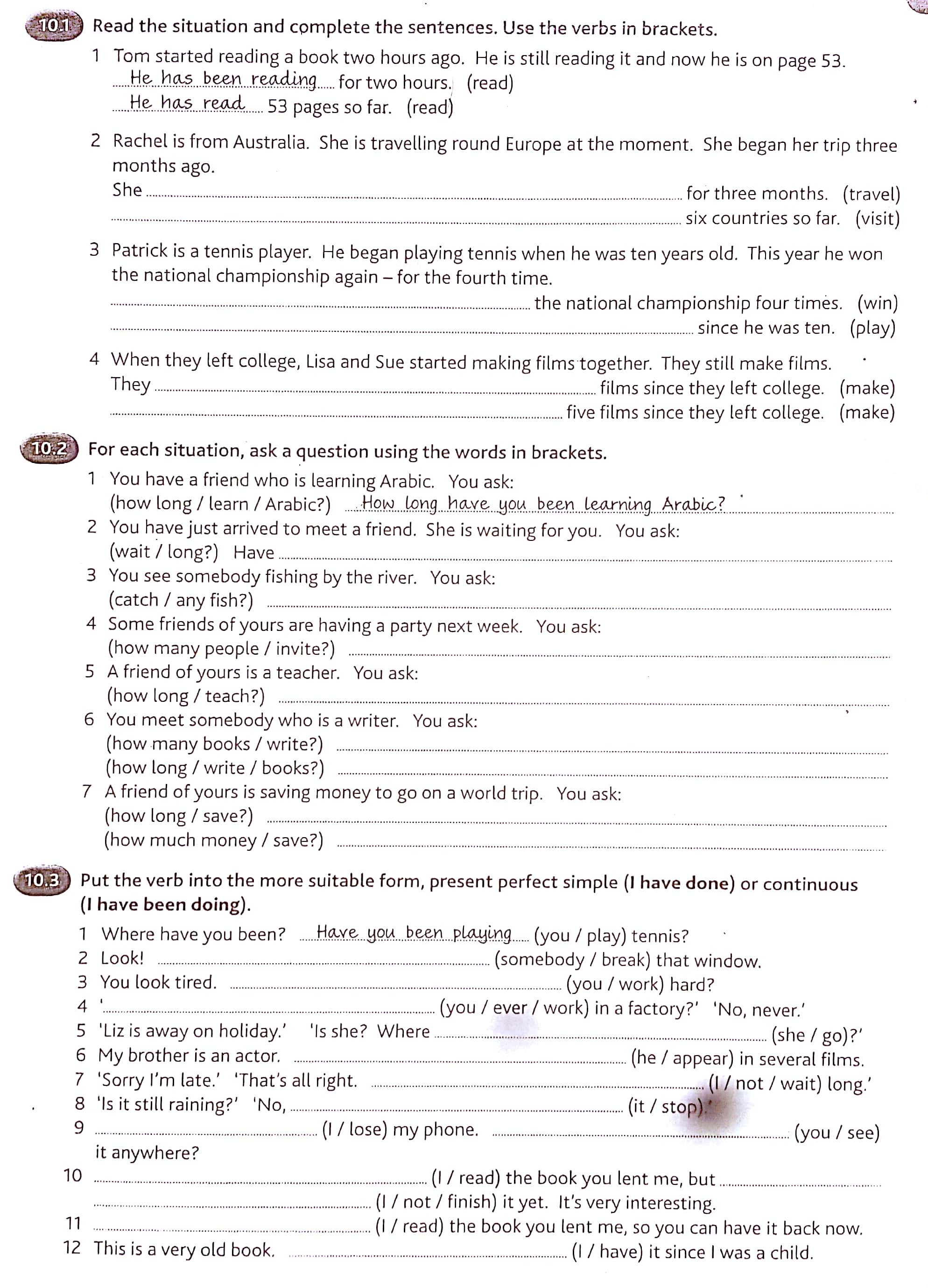 10) I have been reading the book you lent me,but I haven’t finished it yet.