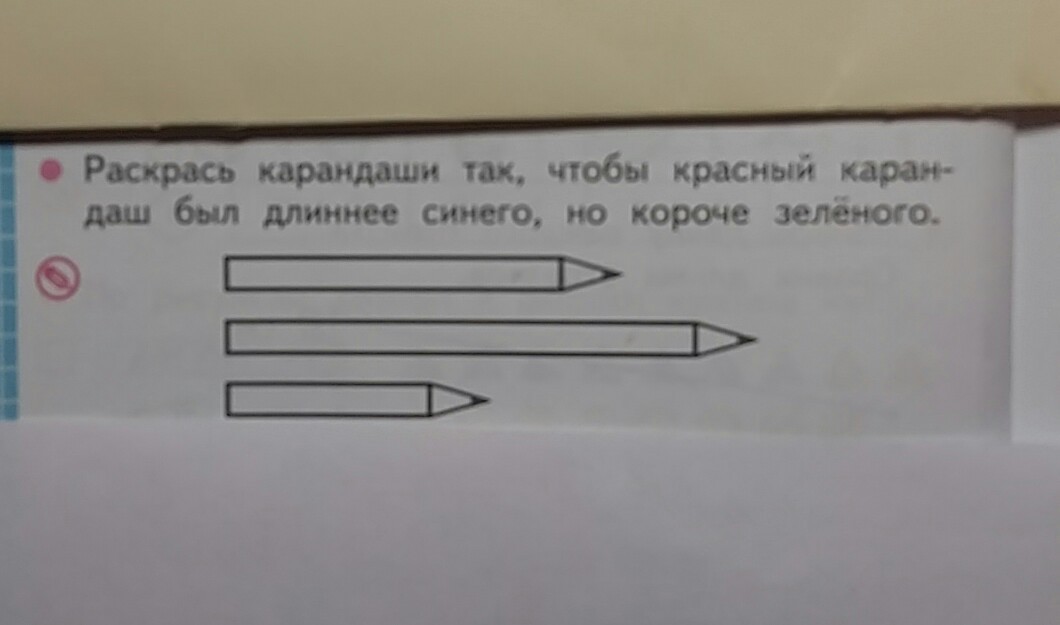раскрась карандаши так, чтобы красный карандаш был длиннее синего,но короче зеленого. Это как?