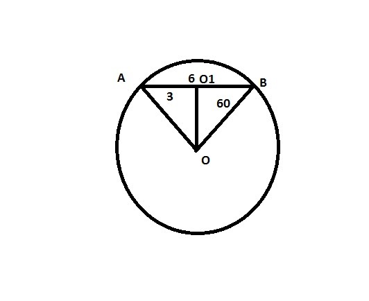 сечение сферы имеет длину 6π см. найдите расстояние от центра сферы до плоскости сечения, если радиус, проведенный в точку сечения, наклоненный к его плоскости под углом 60°