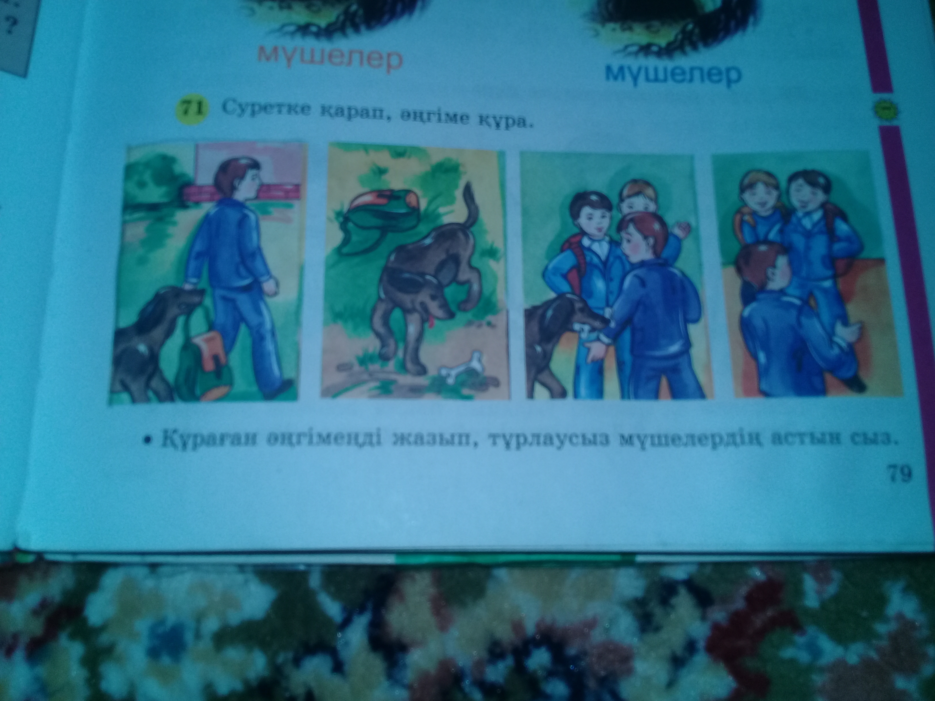 мен сабакка келип жатрм менін итім артымнан сумкамды устап келе жатты.Бірде итім жолдан сүйек тауып алганда сомкені сол жерге тыстап кеткен мен оны байкаган жокпында жүре бердім.Мектепке келсем итіме карап едім онын аузында суйек тур ал сомкем жок екег сосын мен сомкемді іздеуге шыктым