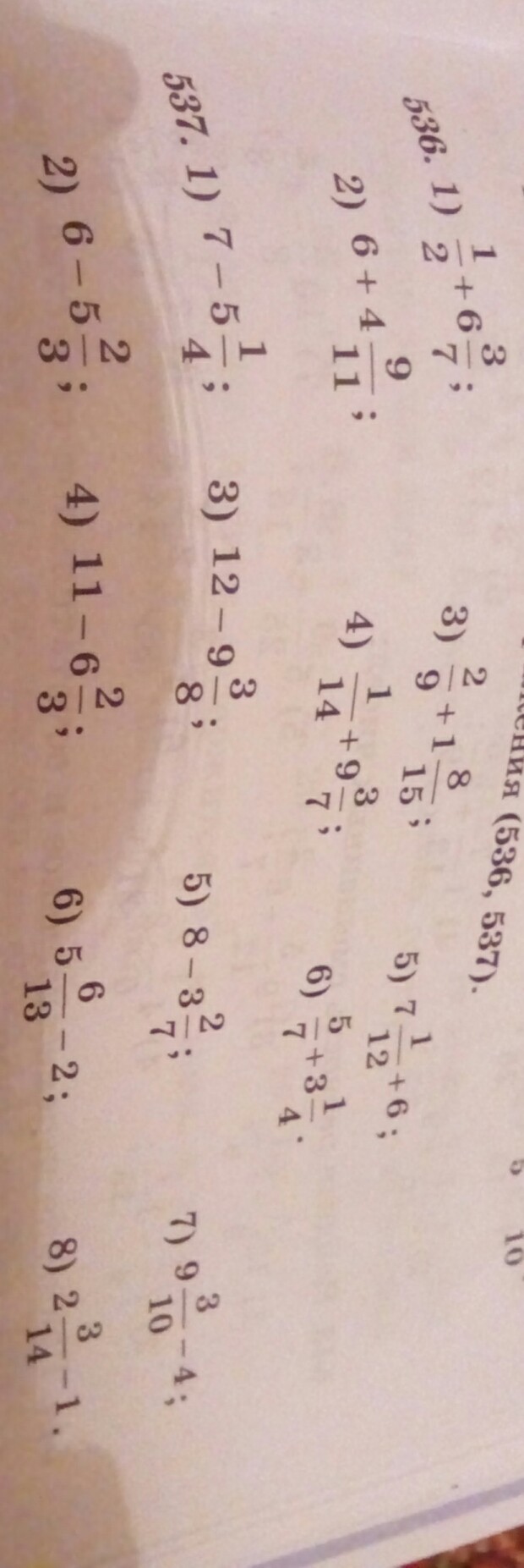 7-5 1/4 =1 4/4-1/4=1 3/4 это ответ на 537 первый пример