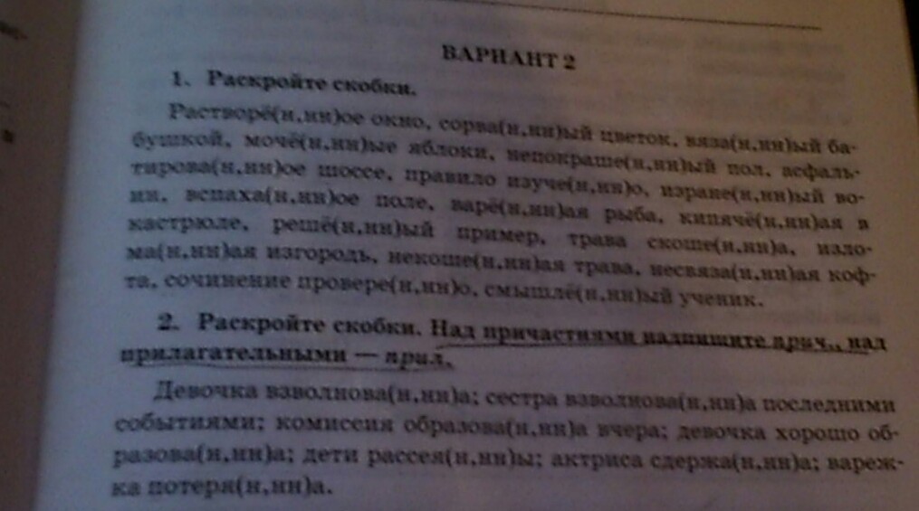 2.Девочка взволнованна(прил.), сестра взволнована (прич.) последними событиями; комиссия образована(прич.) вчера, девочка хорошо образованна(прил.); дети рассеянны(прил.), актриса сдержанна(прил.), варежка потеряна (прич.)