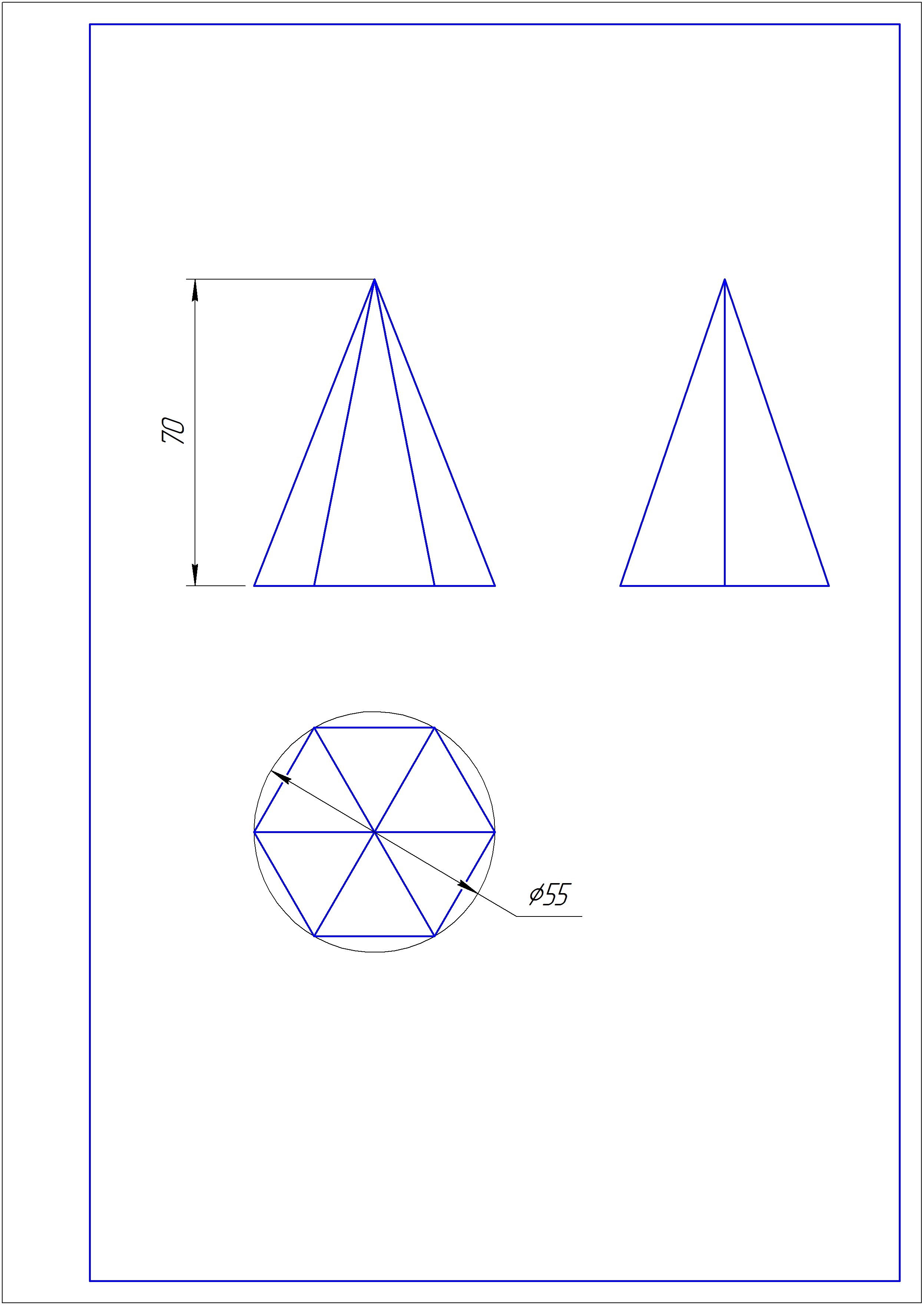 Построенный трехкартинный комплексный чертеж, ниже а приложении