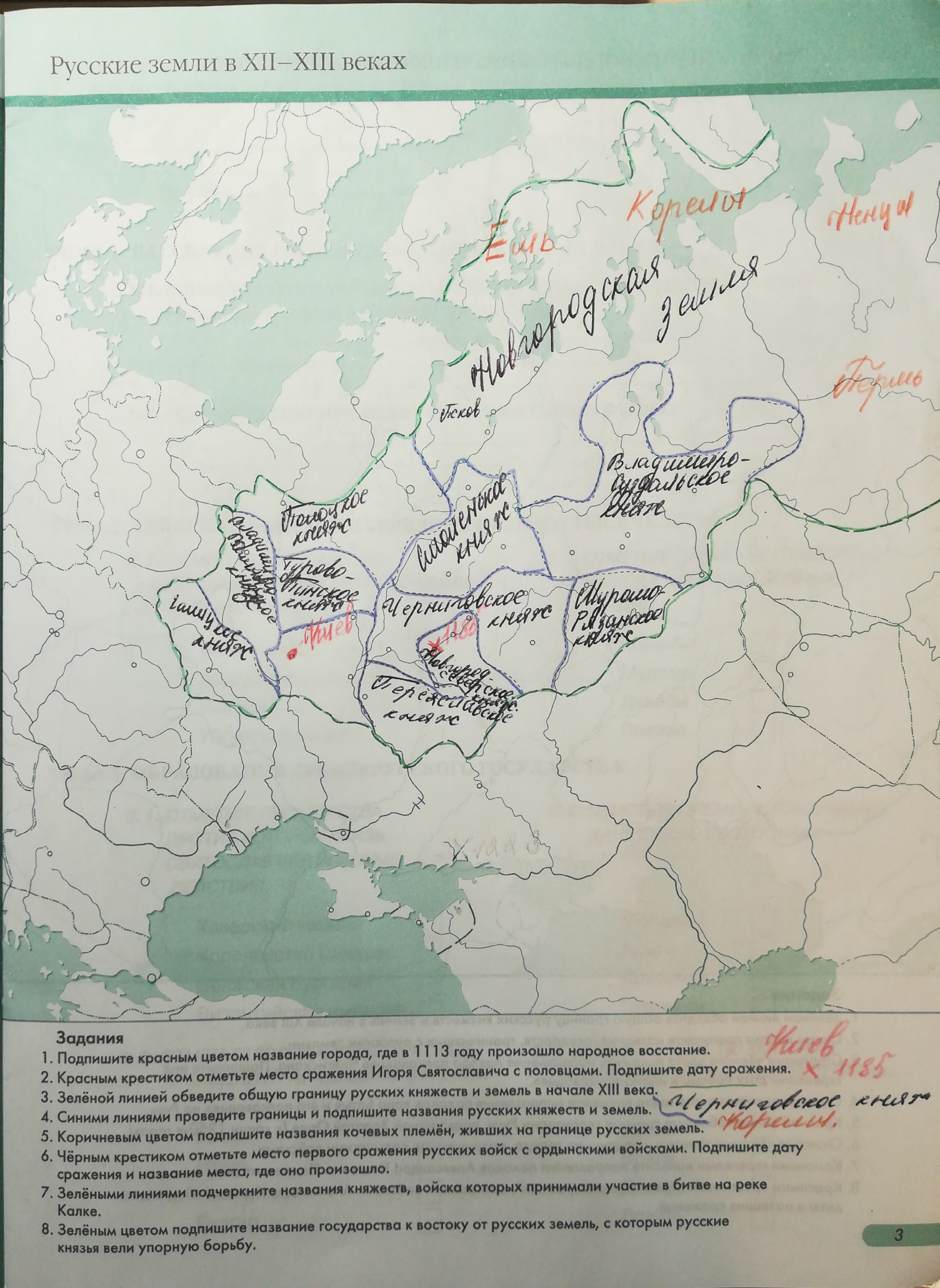Чёрным крестиком отметьте место первого сражения русских войск с ордынскими войсками. Подпишите дату сражения и название места, где оно произошло.