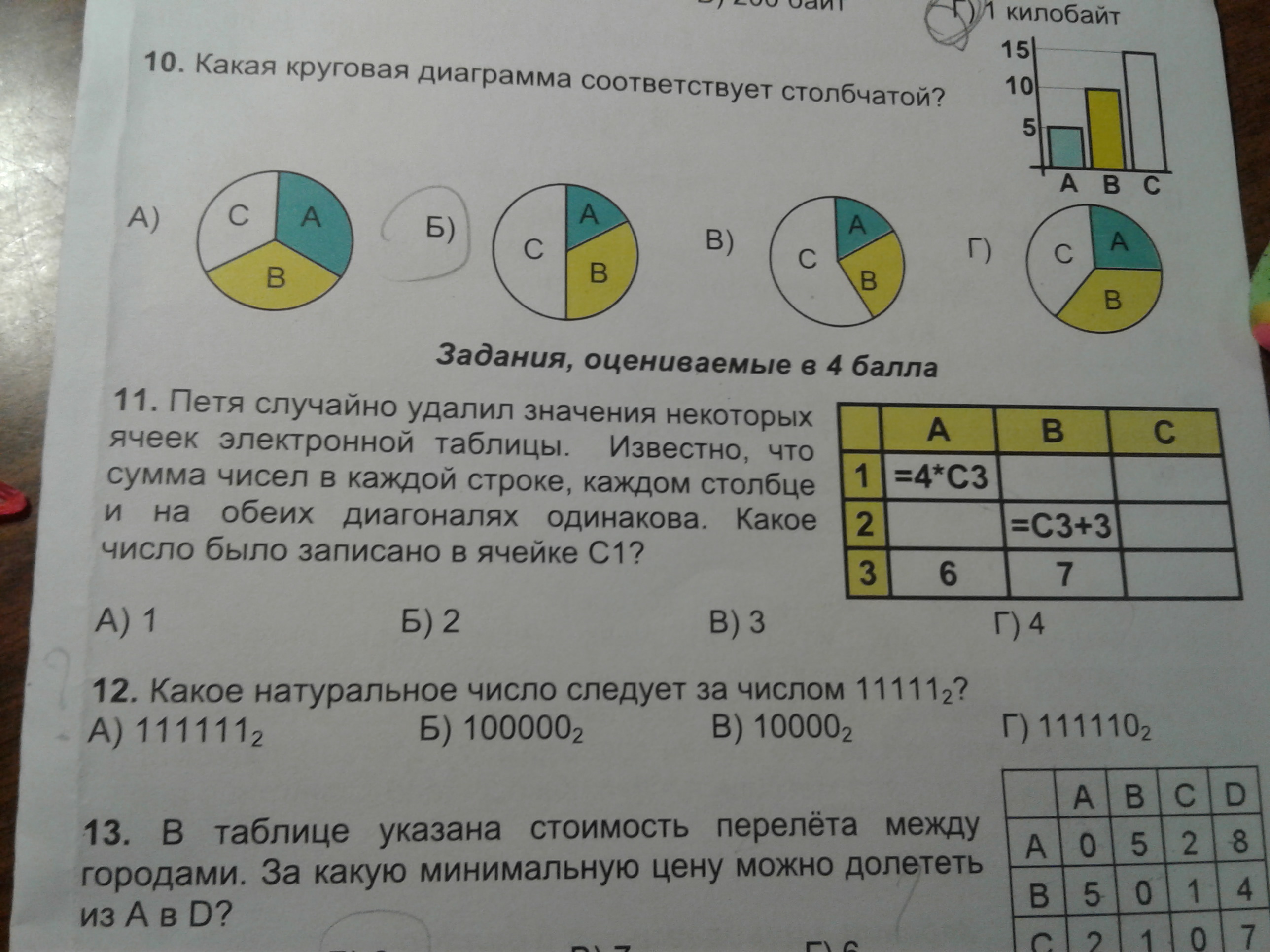 Петя случайно удалил значения некоторых ячеек электронной таблицы. Известно, что сумма чисел в каждой строке, каждом столбце и на обеих диагоналях одинакова. Какое число было записано в ячейке С1?