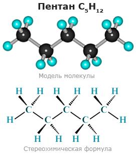 Формула пентана СН3-СН2-СН2-СН2-СН3 (С5Н12)