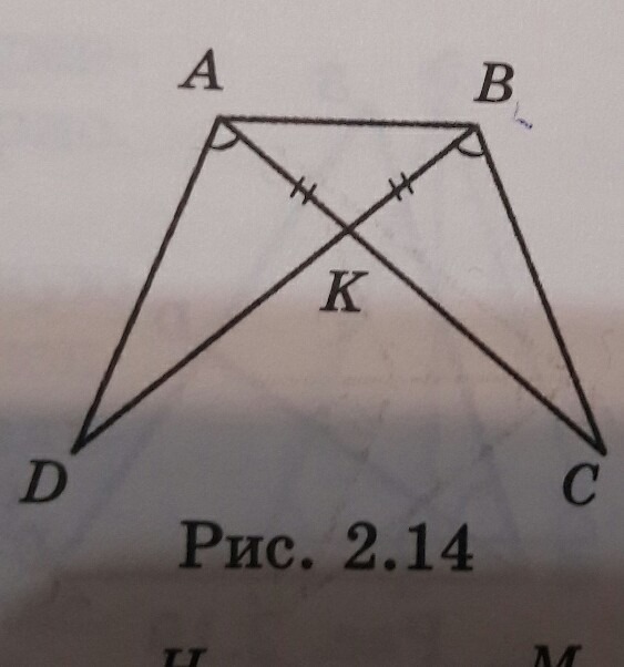 На рисунке 2.14 угол DAC = DBC, AK = KB. Докажите, что угол DAB = CBA