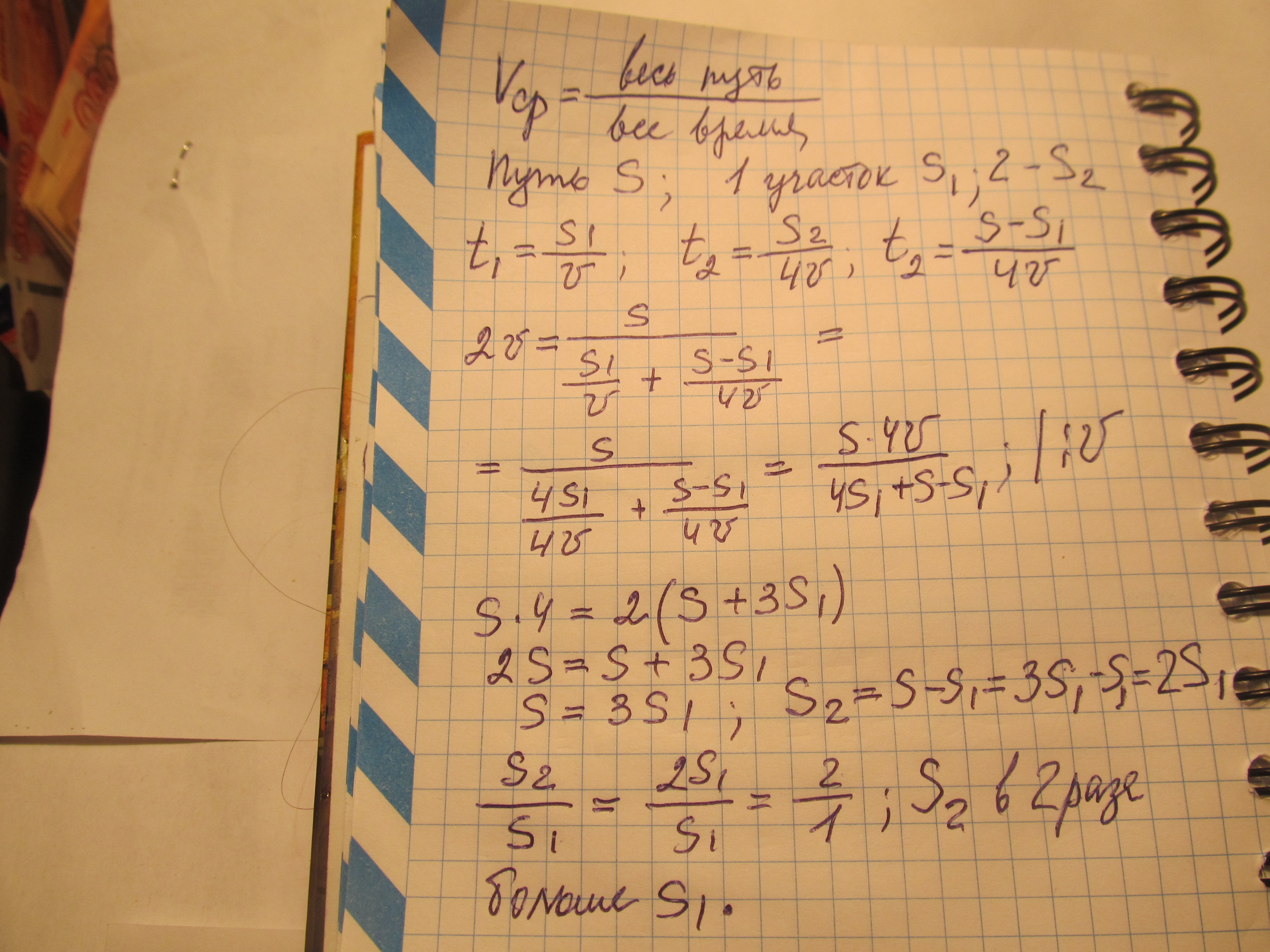 первую часть пути машина проехала со скоростью v а вторую часть 4v средняя скорость 2v найдите отношения второго к первому