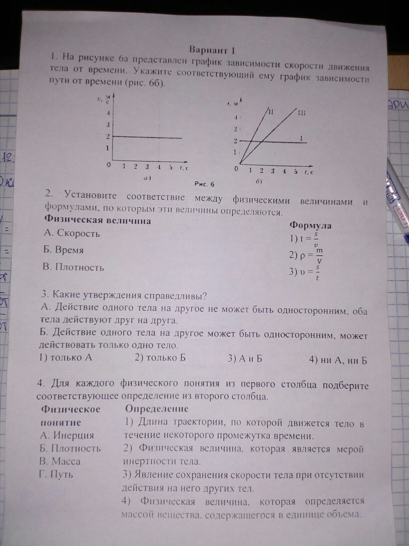 Из рисунка 6а видим, что скорость тела постоянна и равна 2м/с. На рисунке 6б это график под номером 2.