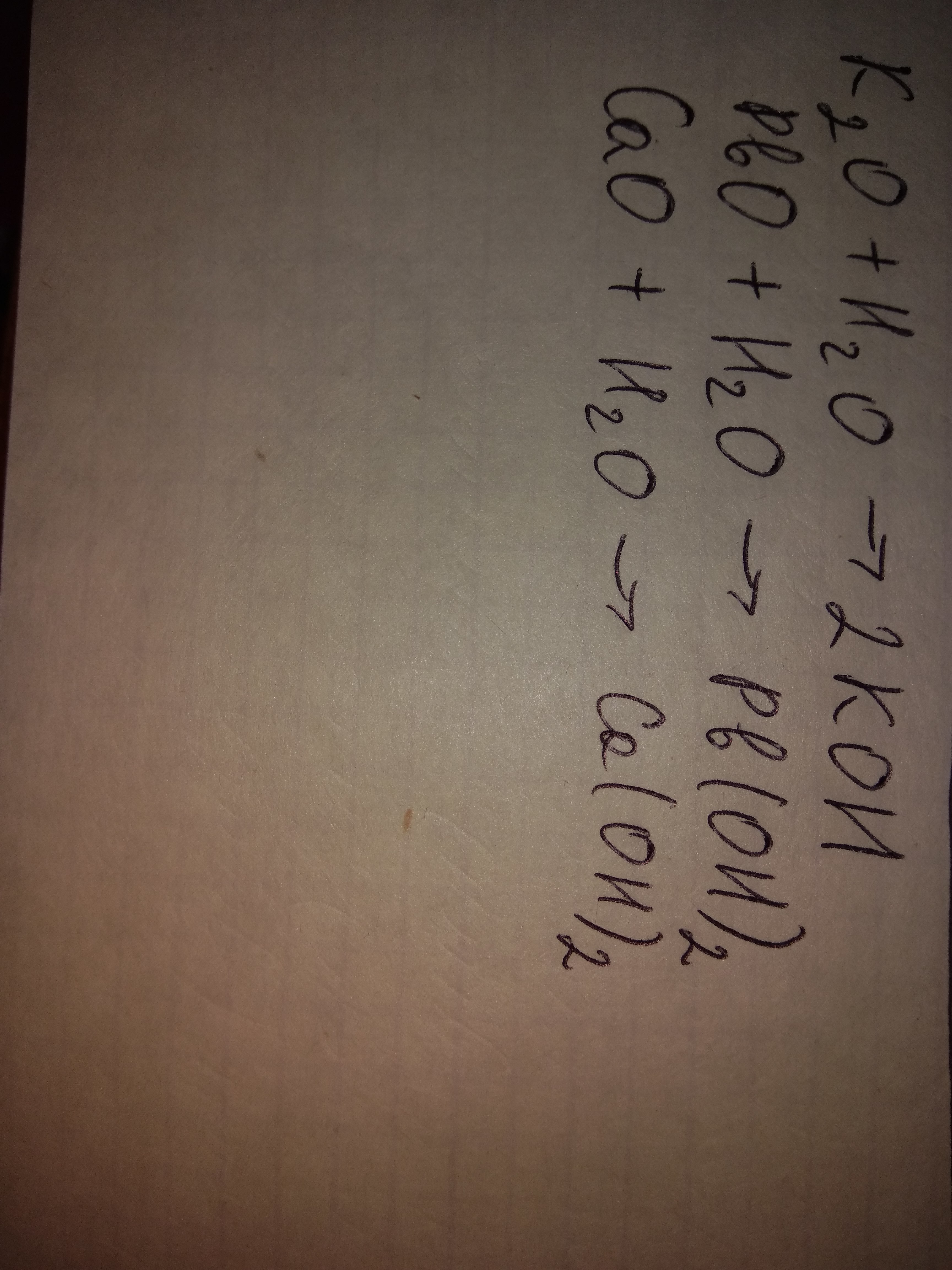 Какие из перечисленных оснований могут быть получены взаимодействием оксида с водой: KOH, CU(OH)2, PB(OH)2, Ca(OH)2, Cr(OH)2