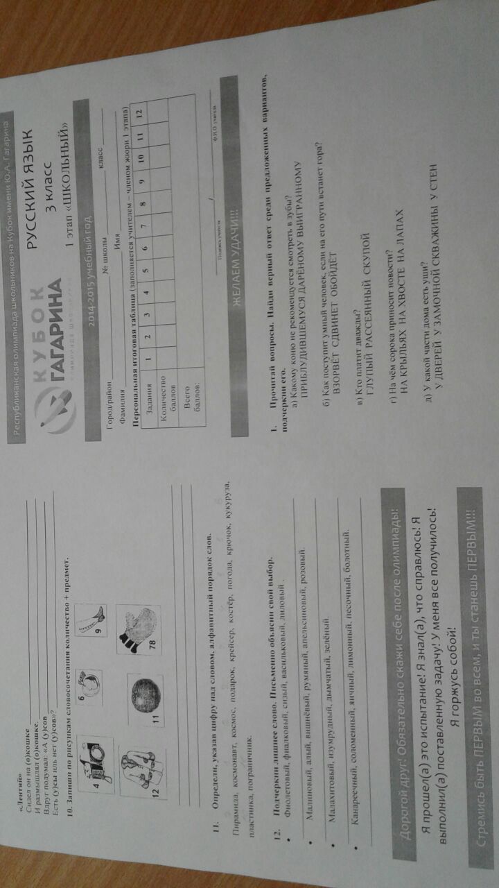 10. 4 фотоаппарата, 6 яблок, 9 сапог,12 пальто,11 мячей (рисунок непонятный),78 варежек.