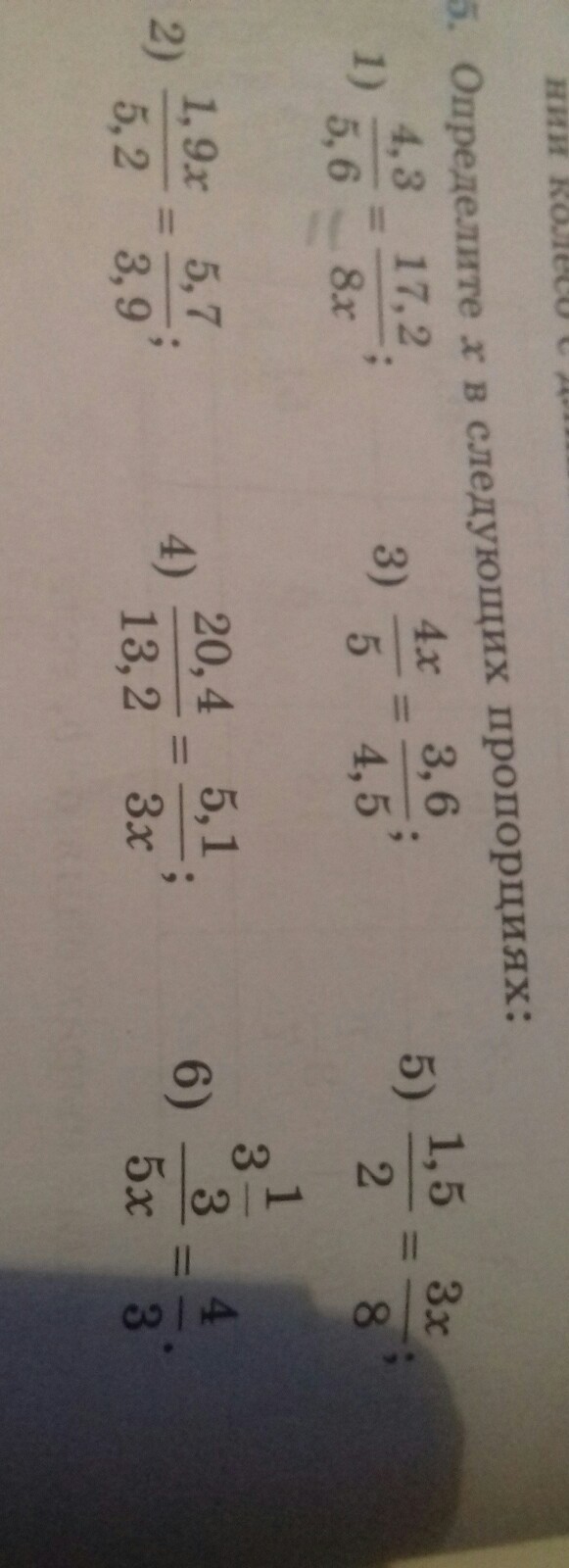 5) 1,5*8 = 3x*2 =12 =6x; x=2