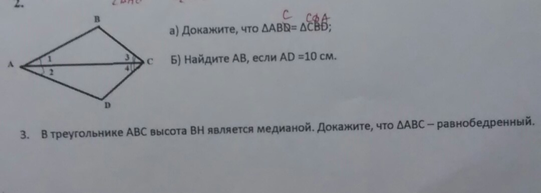 треугольники равны по 2м углам и общей стороне АС. т к они равны следовательно все стороны равны=>AD=AB=10