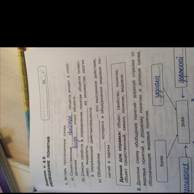 1)Существенные свойства объекта входят в определение вида этого объекта.