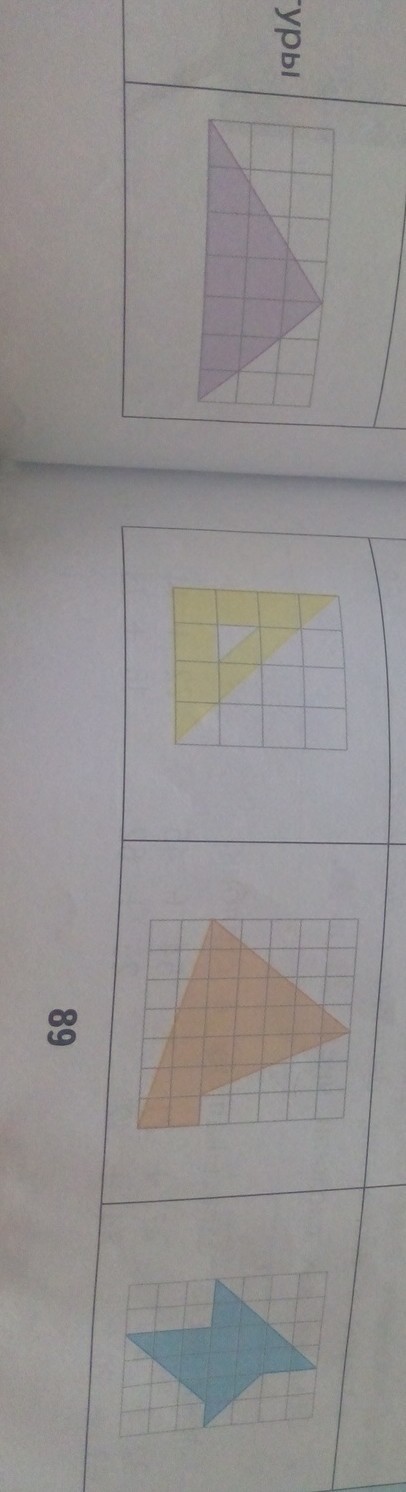 1) фиолетовый треугольник: S = 1/2 * 3*3 + 1/2 * 4*3 = 4,5 + 6 = 10,5 (кл.²)