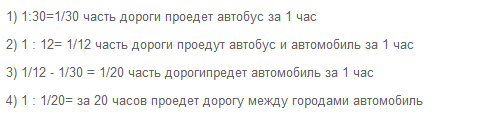 Автобус проезжает расстояние между двумя городами за 30 ч.Если автобус и легковая машина одновременно выедут из этих городов на встречу к друг другу,то они встретятся через 12 часов.За сколько часов расстояние между городами проезжает легковая машина?