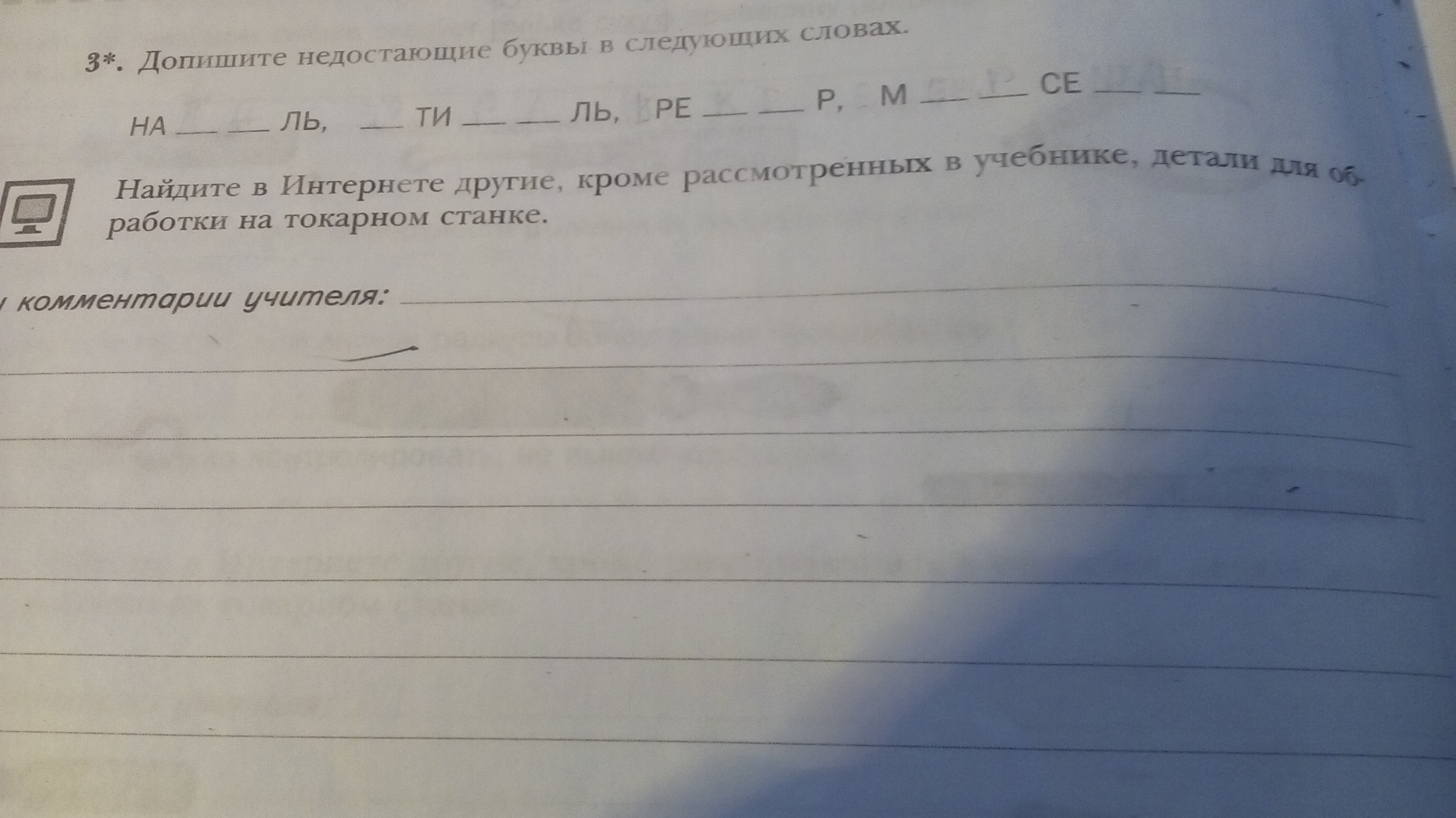 Н а _ _ л ь ; _ т и__ль; ре _ _р ; м_ _с е_ _: