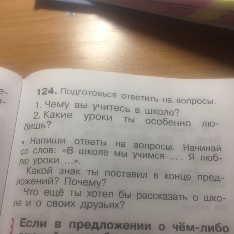 1) Мы учимся в школе: писать, читать, отвечать на различные вопросы.