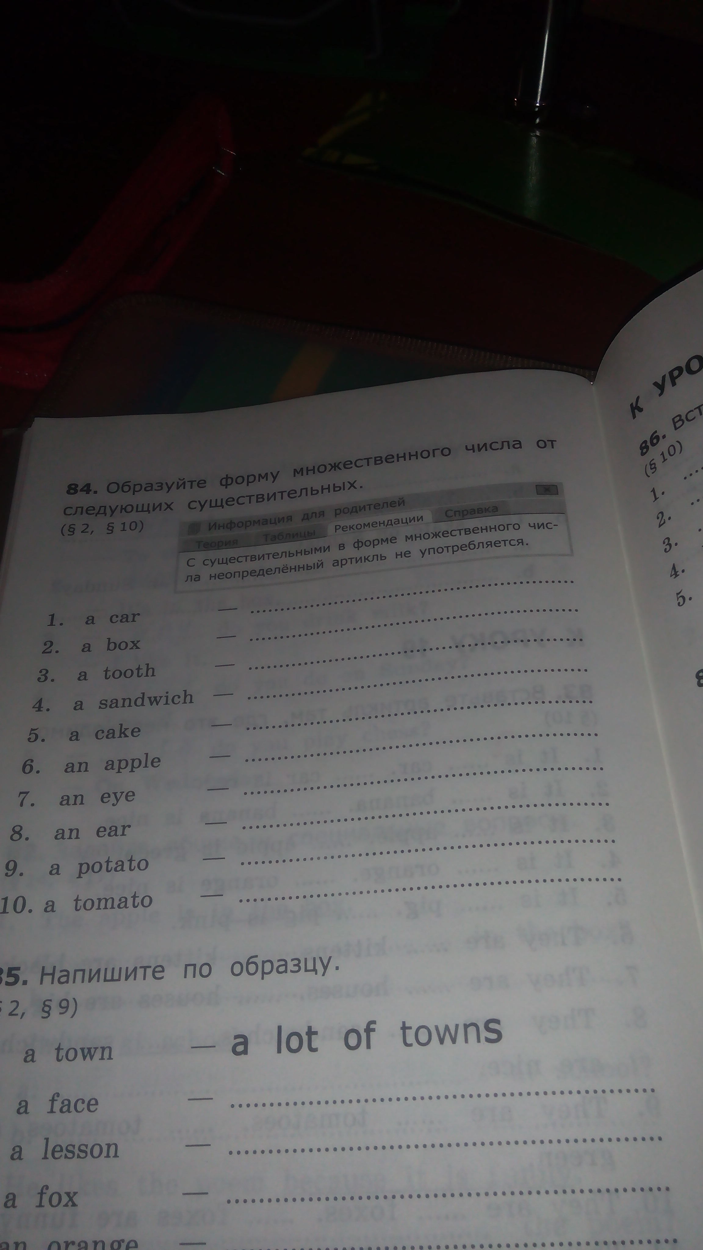 1)cars 2)boxes 3)teeth 4)sandwiches 5)cakes 6)apples 7)eyes 8)ears 9)potatos 10)tomatos