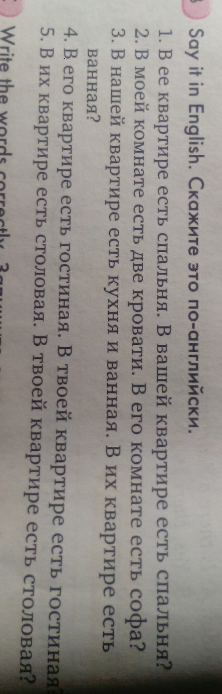 5.In their apartment there is a dining room. In your apartment there is a dining room?