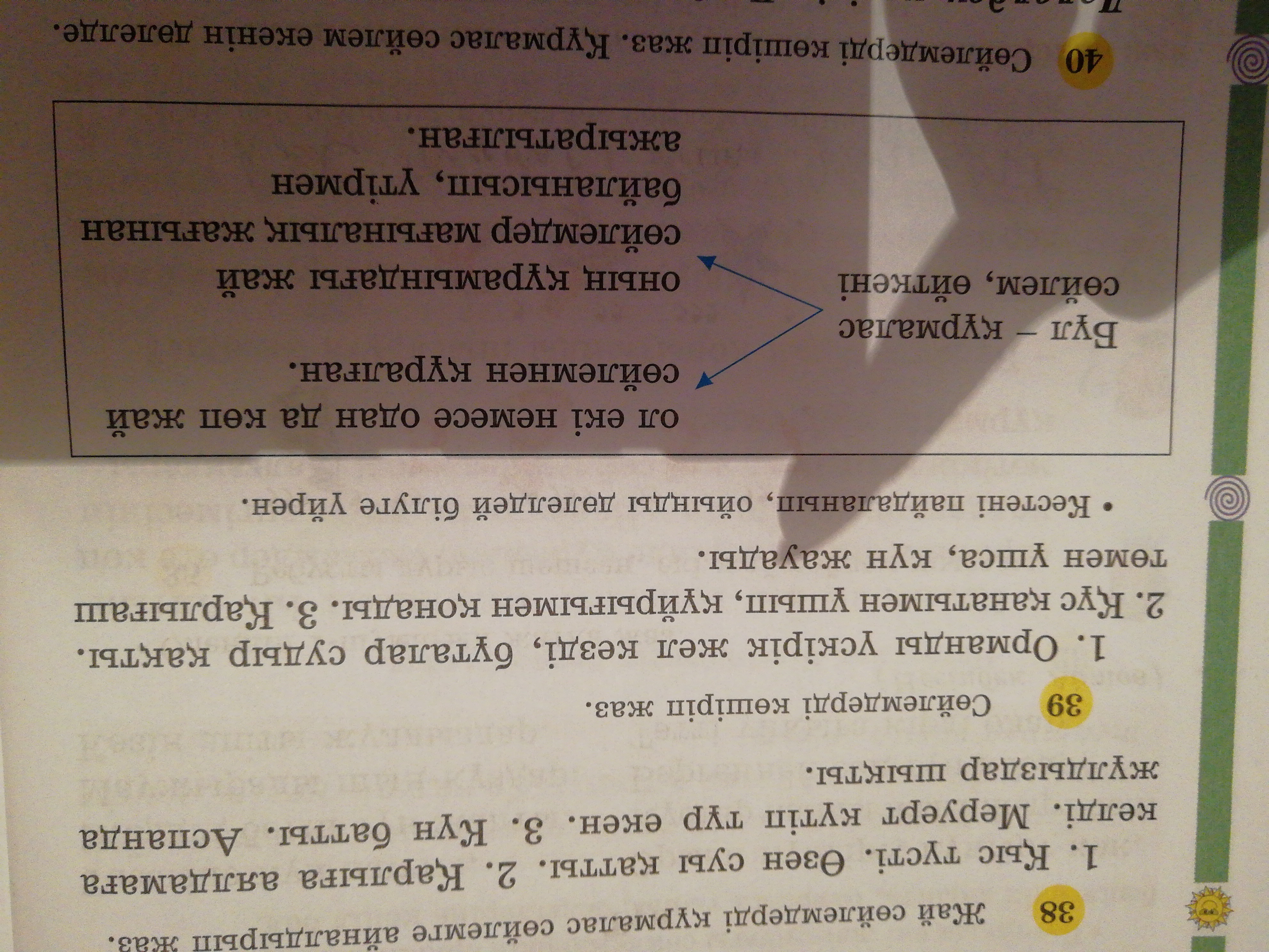 39 жаттығу 70 бет 4 сынып Сөйлемдерді көшіріп жаз. 1.Орманды ускирик жел кезди, буталар судыр какты. 2 Кус канатымен ушып, куйрыгымен конады. 3.Карлыгаш томен ушса, кун жауады. Кестеи пайдаланып, ойынды далелдей билеу уйрен.
